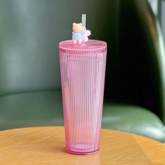 Vaso Venti Acrilico Pink Stripes Sakura Bear Straw Cup China Sakura Collection Spring 2025