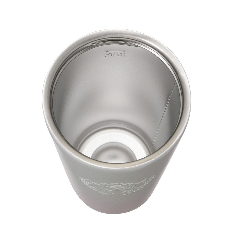 Una botella de acero inoxidable con forma de copa y un atractivo color degradado pálido.