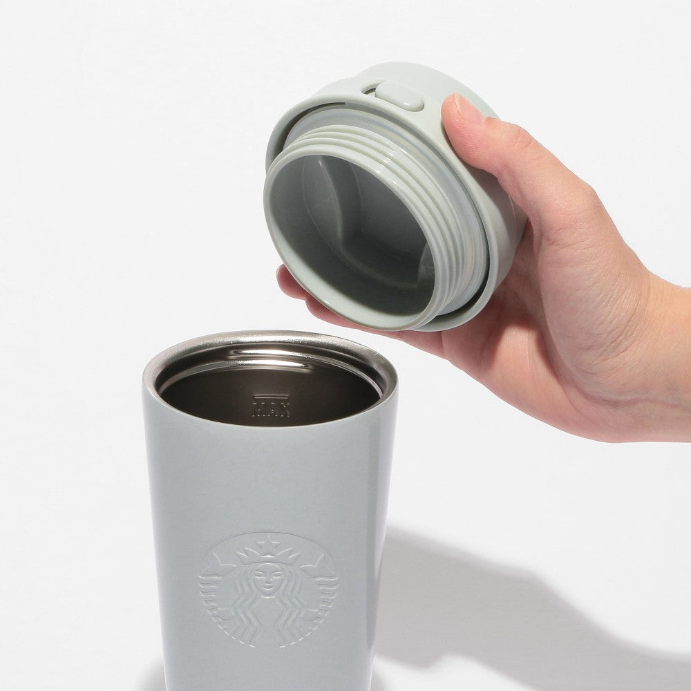 Se trata de una botella de acero inoxidable con forma de copa típica de Starbucks, con una función de bloqueo en la tapa. Desliza el botón hacia la derecha y empújalo para abrir la tapa. Tiene un atractivo diseño de color azul pálido con una gradación rosa tenue desde la parte inferior. El acero inoxidable de doble pared al vacío tiene excelentes propiedades de retención de calor y frío. (Prevención de fugas: Sí)