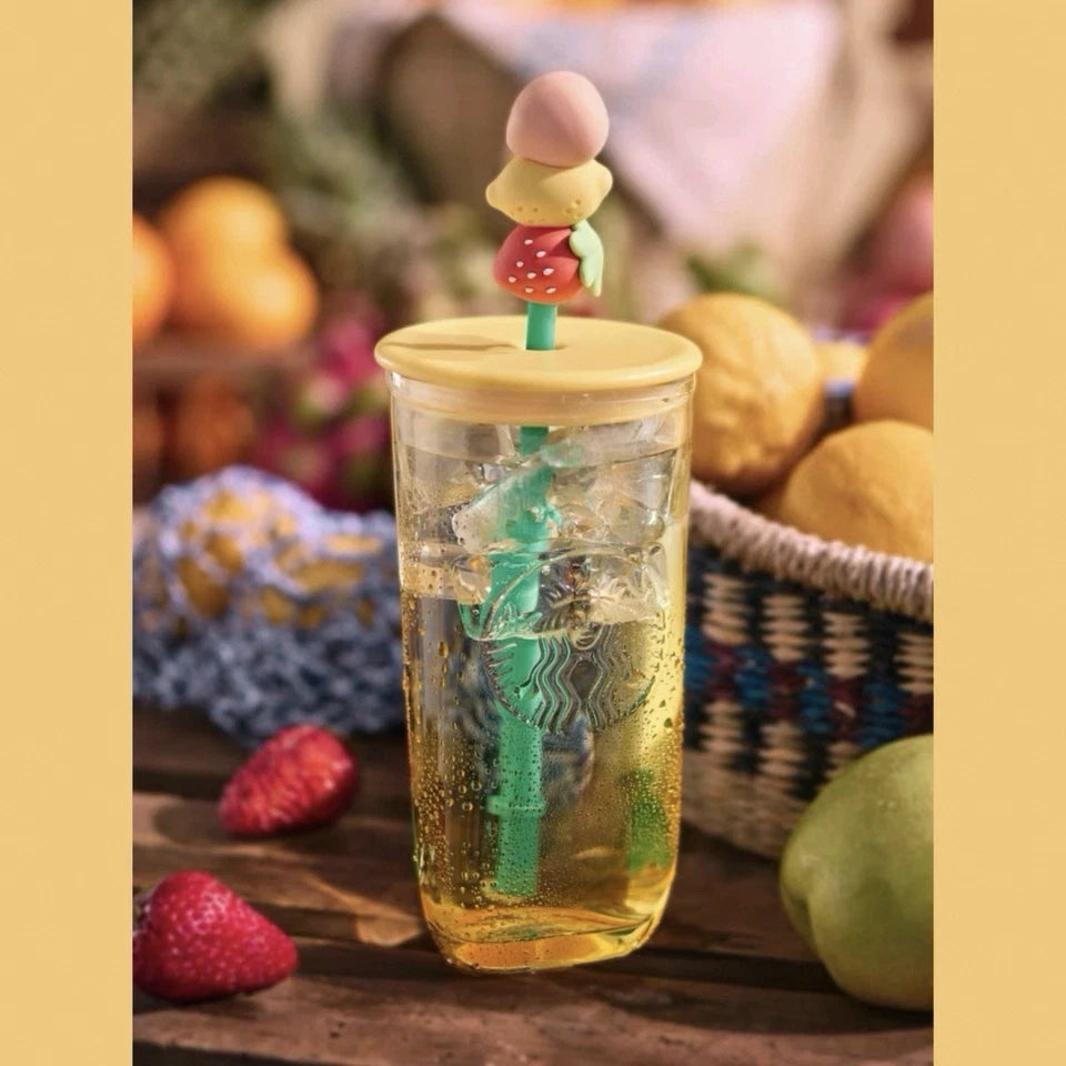 Vaso Triangular de Vidrio con Stopper Starbucks China 2025 Fruit Romance series Triangle glass cup 473ml